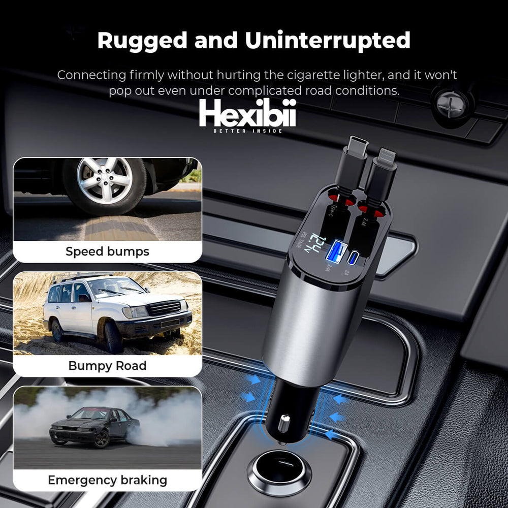 stay Powered On the Go with Hexibii 4-in-1 Retractable Car Charger!